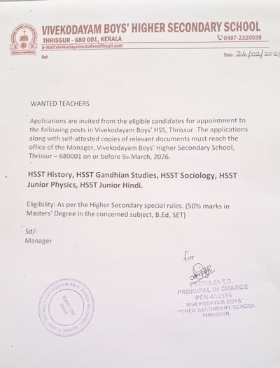 VIVEKODAYAM BOYS� HIGHER SECONDARY SCHOOL Thrissur-680001, Kerala, India. Ph: +91-487-2320039, 2335482